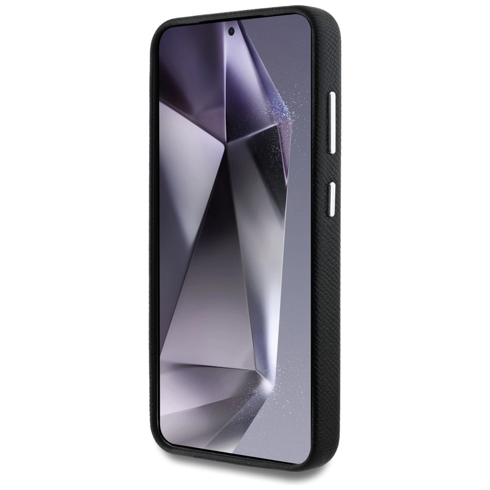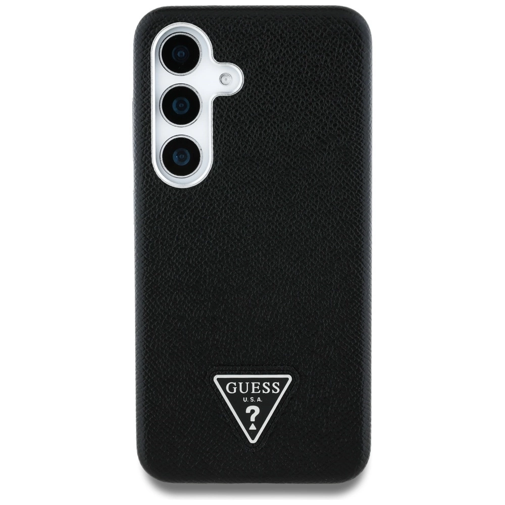 Guess Grained Triangle Logo MagSafe case for Samsung Galaxy S25 - blackGuess grūdėtas trikampio logotipo MagSafe dėklas Samsung Galaxy S25 – juodas