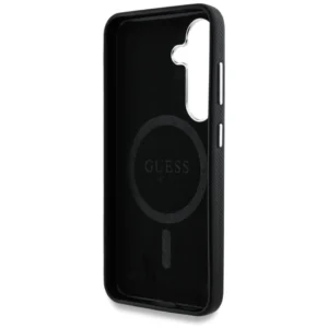 Pradinis | Parduotuvė | Telefonų priedai | Dėklai | Išmaniųjų telefonų apsauginiai dėklai | Guess grūdėtas trikampio logotipo MagSafe dėklas Samsung Galaxy S25 – juodas