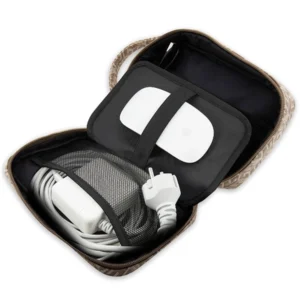 The interior of the bag is extremely functional – numerous compartments allow for comfortable storage of necessary small accessories. The bag has an external port with a USB connector, and the inside of the bag contains a cable with a USB connector.