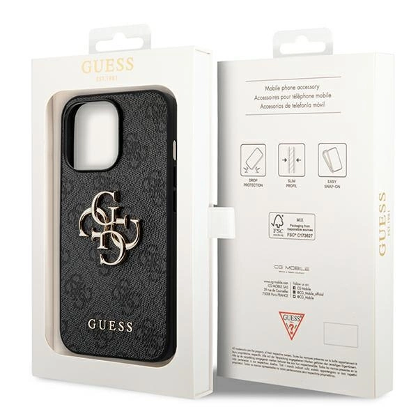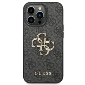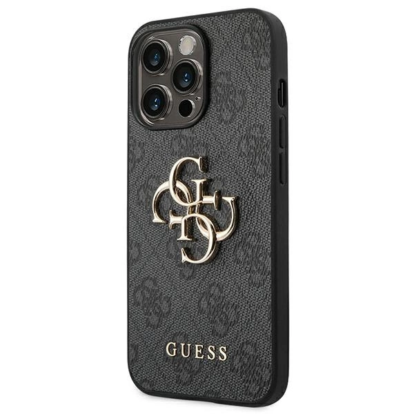 Guess GUHCP14L4GMGGR iPhone 14 Pro 6,1″ pilkas kietas dėklas 4G Didelis metalinis logotipas