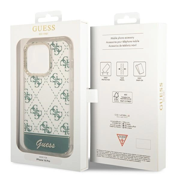 Guess GUHCP14XHG4MHA iPhone 14 Pro Max 6,7″ chaki kietas dėklas 4G Pattern Script