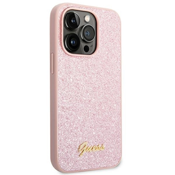 Guess GUHCP14XHGGSHP iPhone 14 Pro Max 6,7″ rožinis kietas dėklas Glitter Script