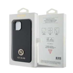 Guess GUHCP15MPS4DGPK iPhone 15 Plus 6.7" black/black hardcase Strass Metal LogoGuess GUHCP15MPS4DGPK iPhone 15 Plus 6.7″ juodas/juodas kietas dėklas Strass metalinis logotipas