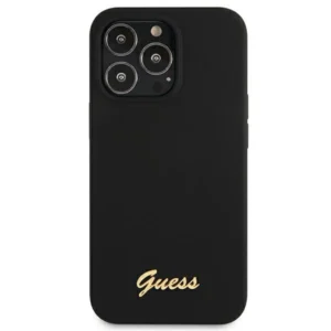 Guess GUHMP13LLSLMGBK iPhone 13 Pro / 13 6.1" black/black hardcase Silicone Script Gold Logo MagSafeGuess GUHMP13LLSLMGBK iPhone 13 Pro / 13 6.1″ juodas kietasis silikoninis dėklas su auksiniu logotipu MagSafe