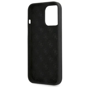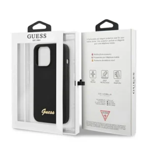 Guess GUHMP13XLSLMGBK iPhone 13 Pro Max 6.7" black/black hardcase Silicone Script Gold Logo MagSafeGuess GUHMP13XLSLMGBK iPhone 13 Pro Max 6.7″ juodas kietasis silikoninis dėklas su auksiniu logotipu MagSafe