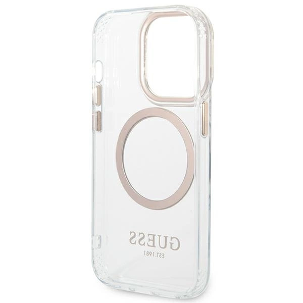 Guess GUHMP14LHTRMD iPhone 14 Pro 6,1″ auksinis kietas dėklas Metal Outline MagSafe