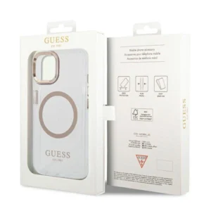 The case will perfectly emphasize the unique design of your iPhone, it has been decorated with golden elements such as the frame around the lenses, buttons and the Guess logo. The case is equipped with a magnetic ring compatible with the MagSafe wireless charger, ensuring quick and easy charging. The magnetic ring perfectly matches the color of the cover.