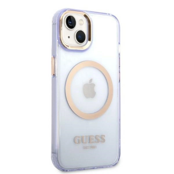 The case will perfectly emphasize the unique design of your iPhone, it has been decorated with silver elements such as the frame around the lenses, buttons and the Guess logo. The case features a magnetic ring compatible with the MagSafe wireless charger for quick and easy charging. The magnetic ring fits perfectly with the color of the cover.