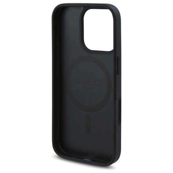 The surface of the case is decorated with a characteristic 4G pattern and a subtle floral motif , which adds a stylish and feminine character. A luxurious accent is the golden Guess logo placed on the case, which emphasizes the elegance and high quality of the product.