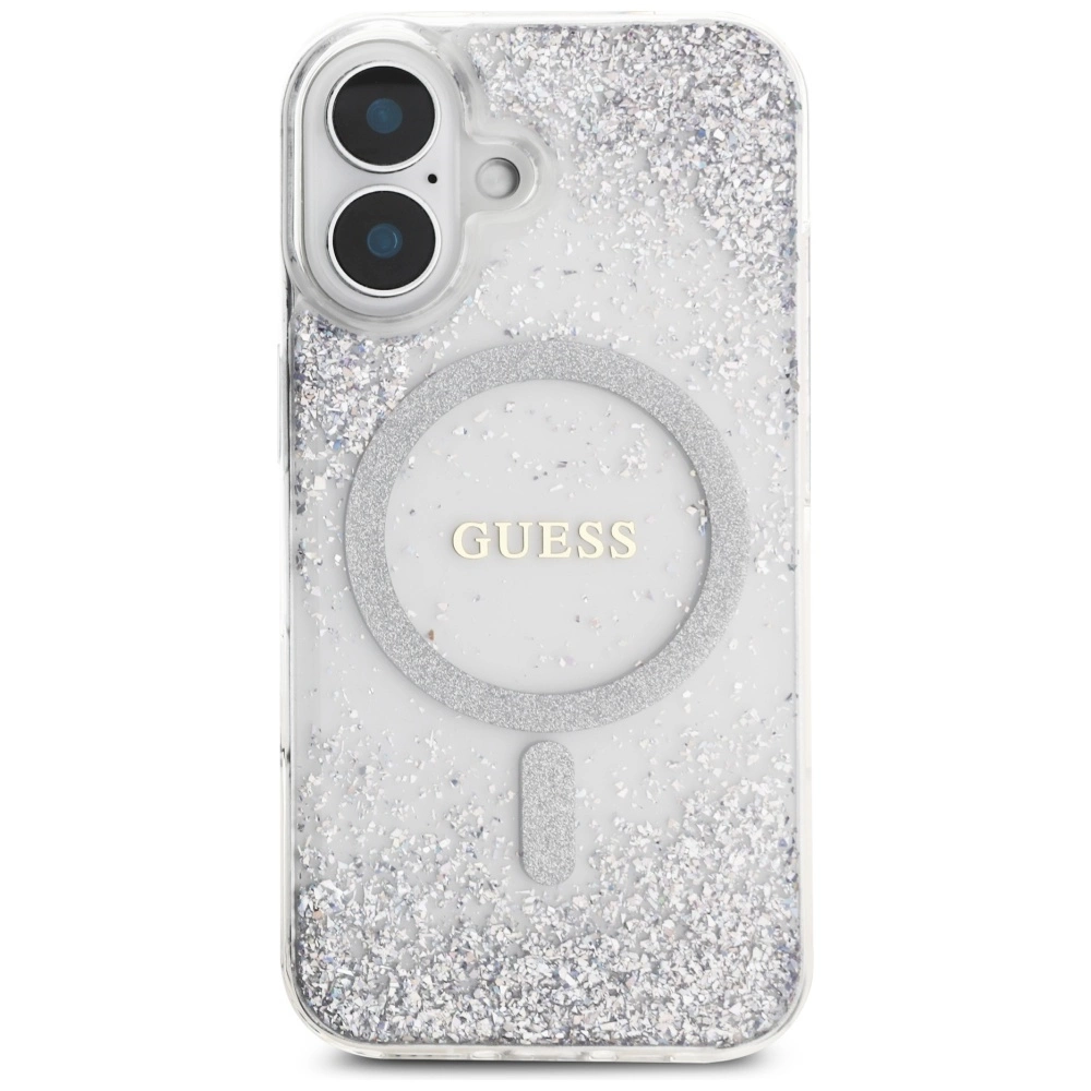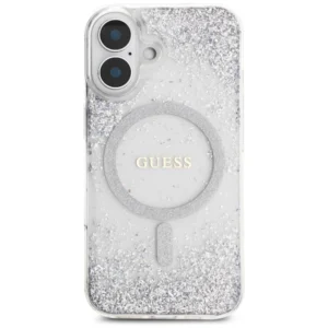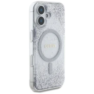 Pradinis | Parduotuvė | Telefonų priedai | Dėklai | Išmaniųjų telefonų apsauginiai dėklai | Guess HC dervos dugno blizgantis MagSafe dėklas iPhone 16 – sidabrinis