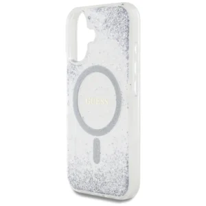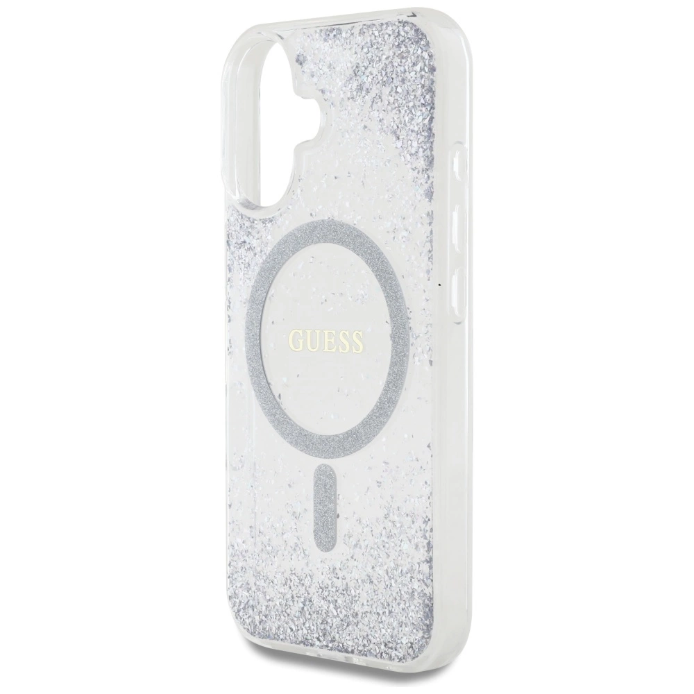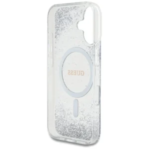 Guess HC dervos dugno blizgantis MagSafe dėklas iPhone 16 – sidabrinis