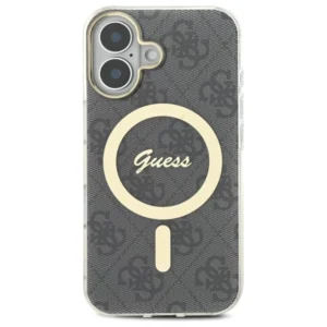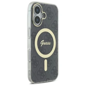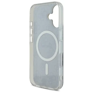 Etui wyróżnia się wyjątkową elegancją, której kwintesencją są dopracowane detale, takie jak złota ramka wokół aparatu oraz stylowy złoty pierścień MagSafe. Wysokiej jakości print 4G, będący ikoną stylu Guess, nadaje pokrowcowi klasyczny, ponadczasowy wygląd. Wewnątrz magnetycznego pierścienia subtelnie wkomponowano także logo Guess, perfekcyjnie współgrające z kolorystyką pokrowca, tworząc harmonijną i spójną całość.