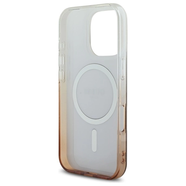 Guess IML Glitter Gradient MagSafe iPhone 16 Pro Case - BrownGuess IML blizgučių gradientas MagSafe iPhone 16 Pro dėklas – rudas