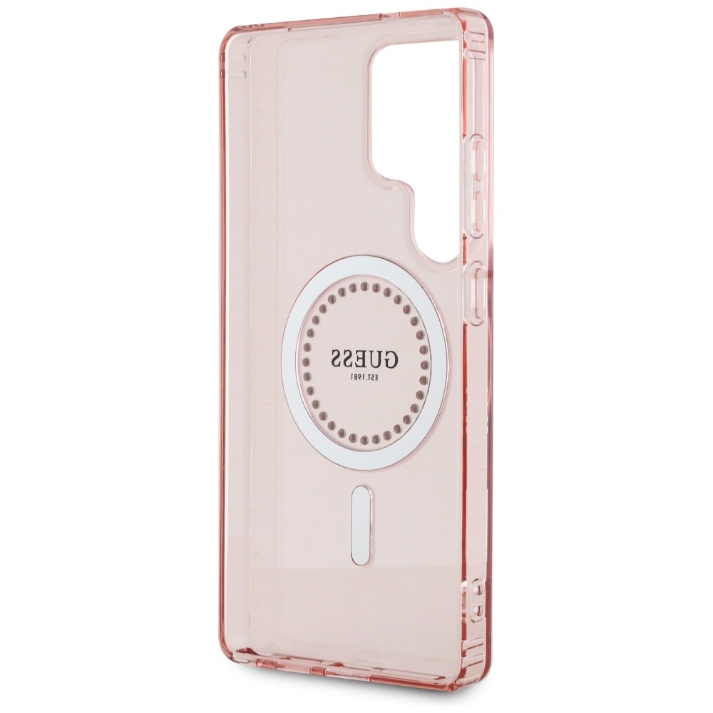 W centralnej części etui znajduje się logo Guess, które subtelnie podkreśla prestiż tego etui.