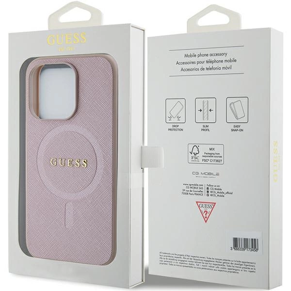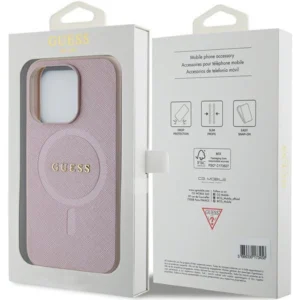 Guess Saffiano MagSafe dėklas iPhone 15 Pro – rožinis