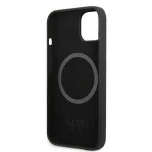 Pradinis | Parduotuvė | Telefonų priedai | Dėklai | Išmaniųjų telefonų apsauginiai dėklai | Guess Silicone Logo Plate MagSafe dėklas iPhone 13 mini – juodas