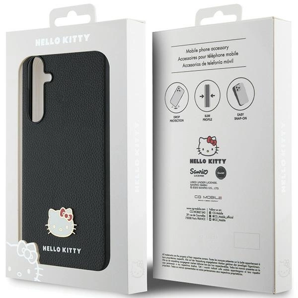 The Metal Logo Kitty Head protective case collection combines unrivaled elegance with the unique style of Hello Kitty. This case is a fashionable accessory for your smartphone that showcases the unique design and adorable look that the Hello Kitty brand is famous for. On each case you will find a characteristic, charming Hello Kitty head , which adds a unique charm to your phone, contrasting wonderfully with the elegant black.