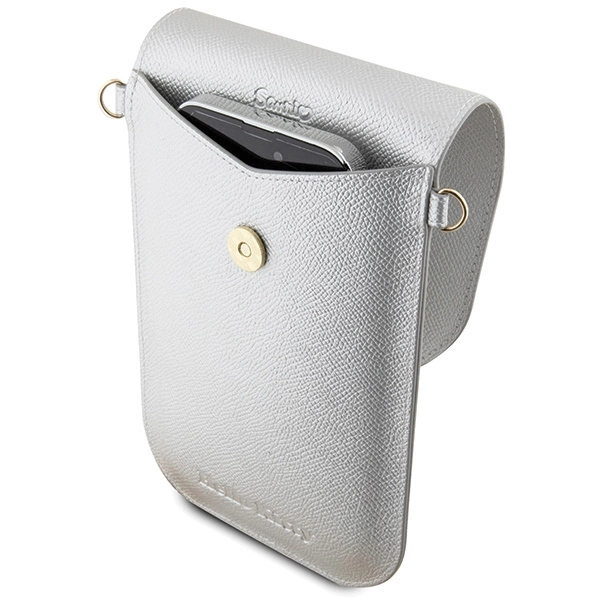 The bag not only looks attractive, but also provides practical protection. Closed with a convenient clip, it protects the phone against accidental slipping out. The interior of the bag contains a smartphone pocket, ensuring safety against scratches and shocks. An additional external pocket is an ideal place to store payment cards or other small items.