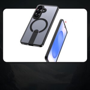 The Hybrid Armor X case was designed for the Samsung Galaxy S26 Plus, offering a combination of robust protection and functional features for everyday use. Its dual-material construction effectively protects the smartphone from scratches, shocks, and pressure. An integrated magnetic ring ensures MagSafe compatibility, allowing for stable use with mounts and chargers. The built-in 360° stand enhances comfort while watching content, video chatting, and working with apps. This case enhances user comfort while maintaining a modern and elegant look.