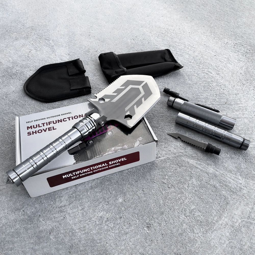 A multifunctional survival shovel is one item which combines many different functions. It will be irreplaceable in hard conditions, when you go camping, stay at the camp or hike. Taking this handy camp shovel, you can not only use it to dig holes in the ground but you can take advantage of other attached accessories, such as a sharp knife, small wood saw, and tip for breaking glass and ice. One accessory is enough to provide yourself with several functions which will surely be useful in hard conditions, away from people.