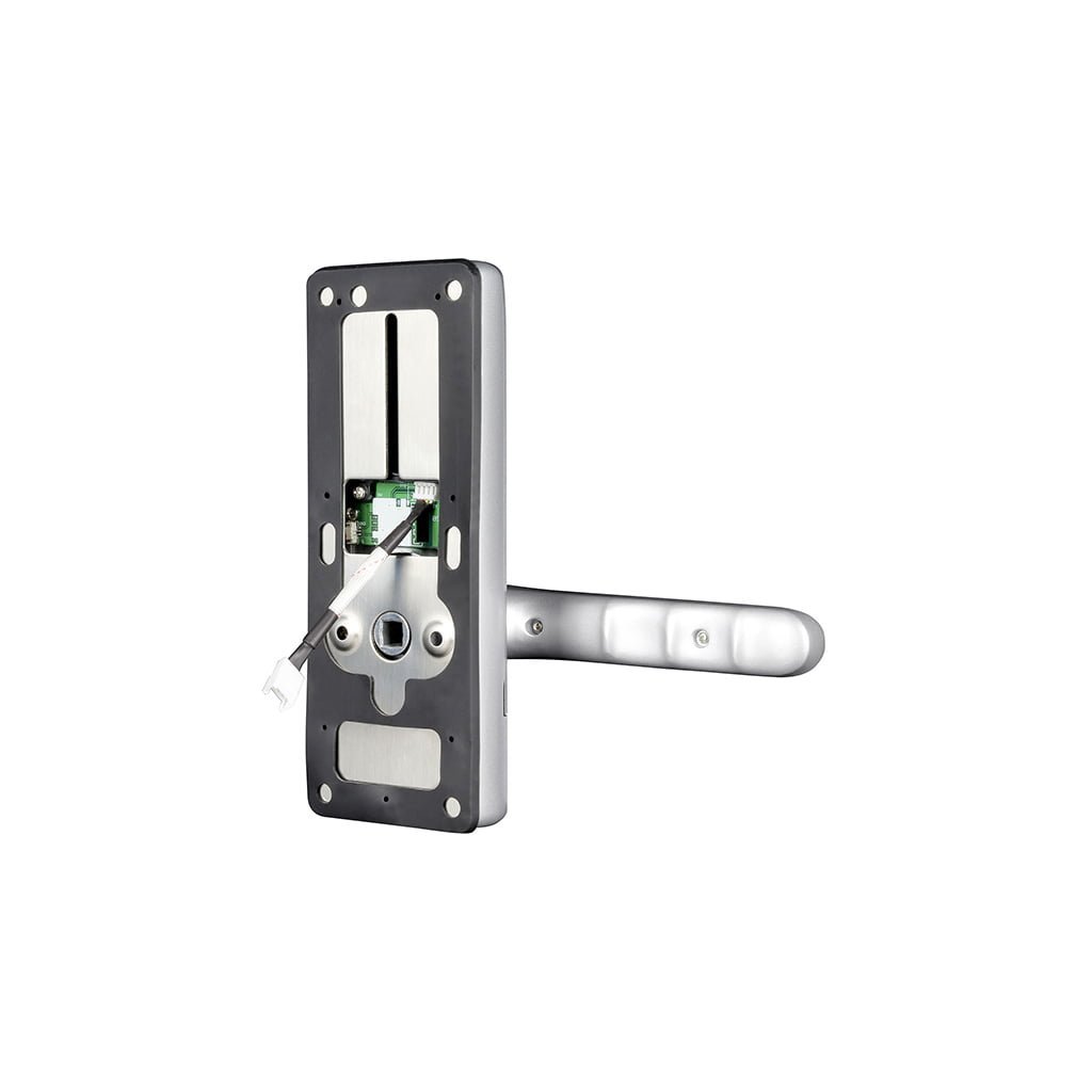 Ant skydo korpuso yra jutiklinio ekrano klaviatūra su įmontuotu bevielio rakto (raktų pakabuko / iButtons) skaitytuvu ir „Bluetooth” moduliu. Priartinus RFID raktų rinkinį prie skaitytuvo arba klaviatūroje įvedus kodą, prieigos kontrolės modulis duoda impulsą, po kurio servo variklis atrakina mechaninę pavarą, todėl duris galima atidaryti įprastai paspaudus rankenėlę, esančią išorinėje iškaboje. Gamykloje nustatytas laukimo laikotarpis, per kurį reikia paspausti rankeną, yra maždaug 5 sekundės, po to pavara vėl užblokuojama ir spyna pereina į kito impulso laukimo būseną.