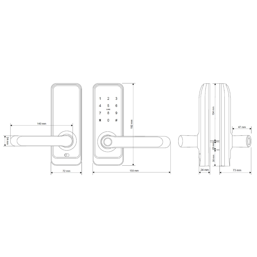 Įeigos valdiklis yra skirtas išoriniam ir vidiniam montavimui tiek ant kairės, tiek ant dešinės pusės durų, o dėl universalaus 38 ~ 40,5 mm atstumo tarp tvirtinimo varžtų daugeliu atvejų galima naudoti duryse jau sumontuotą spyną.