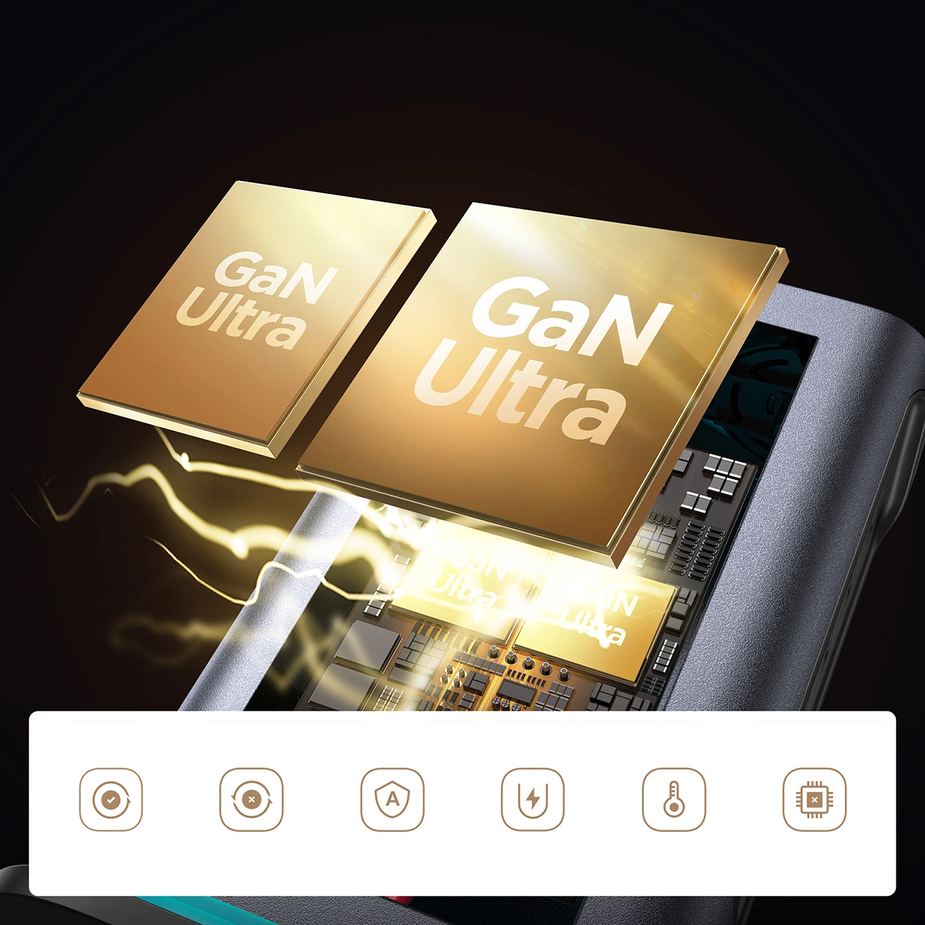 - Provides stable charging thanks to GaN technology, reducing the risk of overheating . The latest GaN chip guarantees safer use.