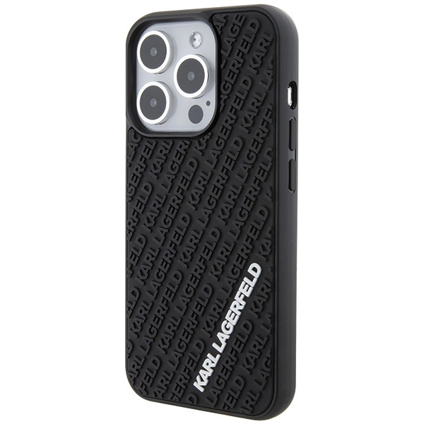 Karl Lagerfeld 3D Rubber Multi Logo case for iPhone 15 Pro - blackKarl Lagerfeld 3D Rubber Multi Logo dėklas iPhone 15 Pro – juodas