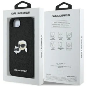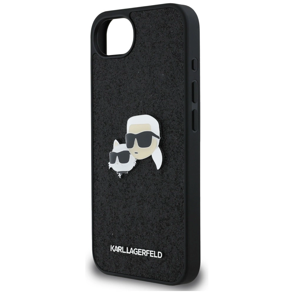 Karl Lagerfeld Fixed Glitter Karl & Choupette Heads Metal Pin iPhone 16e dėklas – juodas