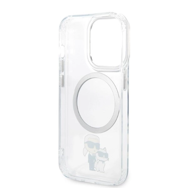 Perfectly highlighting the unique design of your iPhone, the case is decorated with images of the famous designer Karl Lagerfeld and his cat Choupette. The case is equipped with a magnetic ring compatible with the MagSafe wireless charger, ensuring quick and easy charging.