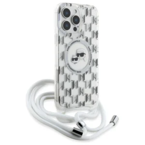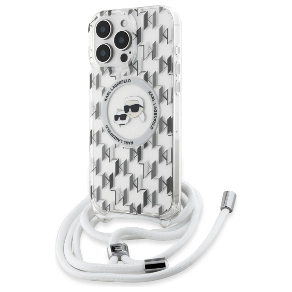 Karl Lagerfeld IML Crossbody Monogram Karl & Choupette galvutė MagSafe iPhone 16 Pro dėklas – permatomas