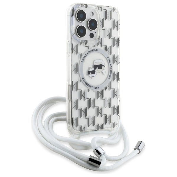 Karl Lagerfeld IML Crossbody Monogram Karl & Choupette Head MagSafe Case for iPhone 16 Pro - ClearKarl Lagerfeld IML Crossbody Monogram Karl & Choupette galvutė MagSafe iPhone 16 Pro dėklas – permatomas