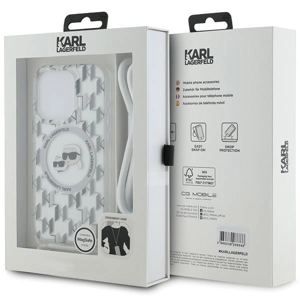 Karl Lagerfeld IML Crossbody Monogram Karl & Choupette Head MagSafe Case for iPhone 15 Pro - TransparentKarl Lagerfeld IML Crossbody Monogram Karl & Choupette Head MagSafe dėklas skirtas iPhone 15 Pro – permatomas