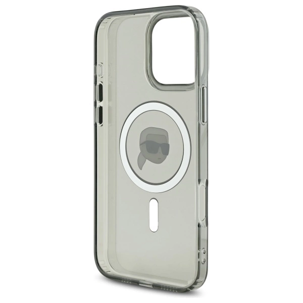 Karl Lagerfeld IML Metal Karl Head MagSafe iPhone 16 Pro Case - BlackKarl Lagerfeld IML Metal Karl galvos MagSafe dėklas iPhone 16 Pro – juodas