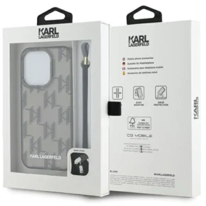 This elegant hardcase is distinguished by the dotted initials "KL" in gray, which give it a luxurious look. Additionally, the case includes a lanyard that can be worn on your hand to prevent the phone from accidentally falling.