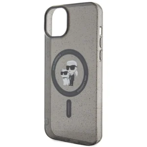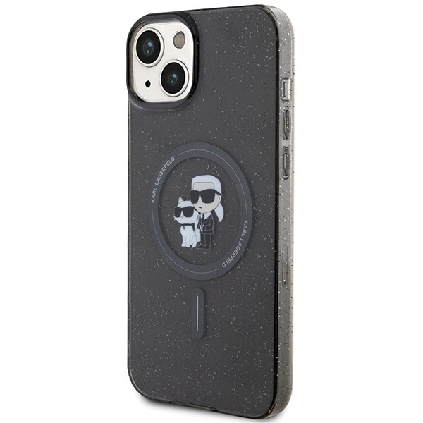 Karl Lagerfeld Karl&Choupette Glitter MagSafe case for iPhone 15 - blackKarl Lagerfeld Karl & Choupette Glitter MagSafe dėklas iPhone 15 – juodas