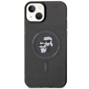 Karl Lagerfeld Karl & Choupette Glitter MagSafe dėklas iPhone 15 – juodas