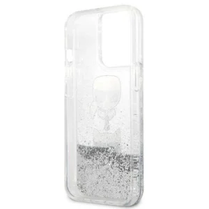 Nieszablonowe etui ozdobione jest uroczą grafiką Karla i jego kotki Choupette, podkreśloną przez drobinki płynnego, lśniącego brokatu, który zmienia swoje ułożenie pod wpływem zmiany kąta nachylenia.