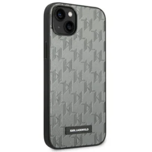 Karl Lagerfeld KLHCP14MSAKLHPG iPhone 14 Plus 6,7″ pilkas kietas dėklas Saffiano Mono Metal Logo