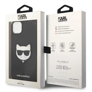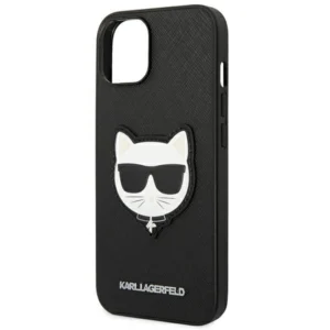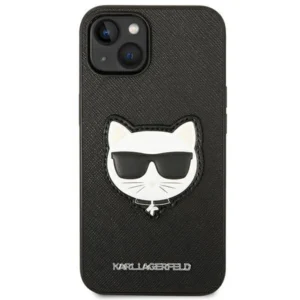 Karl Lagerfeld KLHCP14MSAPCHK iPhone 14 Plus 6,7″ juodas kietas dėklas Saffiano Choupette galvos emblema