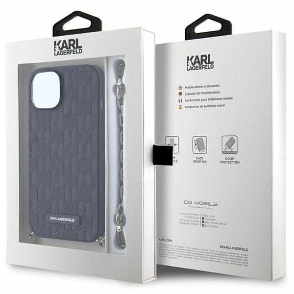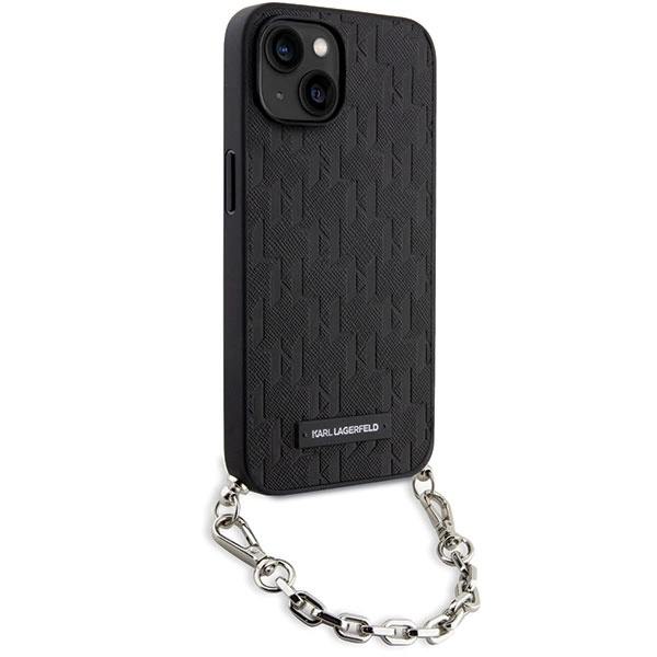 Karl Lagerfeld KLHCP14SSACKLHPK iPhone 14 6.1" black/black hardcase Saffiano Monogram ChainKarl Lagerfeld KLHCP14SSACKLHPK iPhone 14 6,1″ – juodas/juodas kietas dėklas Saffiano Monogram Chain