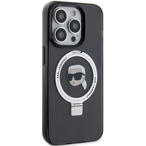 Karl Lagerfeld KLHMP15LHMRSKHK iPhone 15 Pro 6,1″ juodas/juodas hardcase Ring Stand Karl Head MagSafe