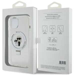 The Karl&Choupette Magsafe Ring Stand collection is a combination of exceptional practicality, excellent quality and a sophisticated look. This unique protective case provides a stylish look that every fan of fashionable accessories will surely appreciate. With the cover of the latest Ring Stand collection, you will emphasize your excellent style and commitment to a valued clothing brand and At the same time, you will provide your smartphone with the highest level of protection that it certainly deserves.