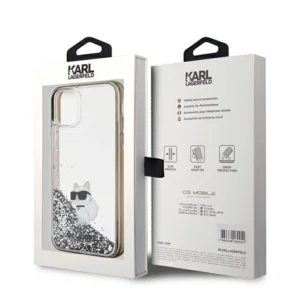 Karl Lagerfeld Liquid Glitter Choupette dėklas iPhone 11 / Xr – skaidrus