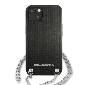 Karl Lagerfeld odinis tekstūrinis dėklas su grandinėle iPhone 13 / 14 / 15 6.1” – juodas