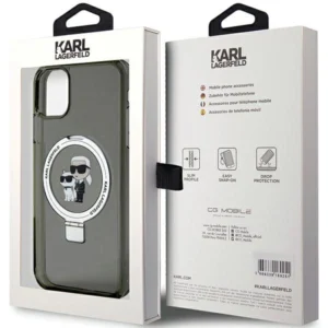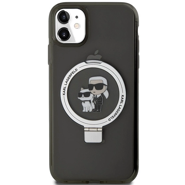 Karl Lagerfeld Ring Stand Karl&Choupette MagSafe case for iPhone 11 / Xr - blackKarl Lagerfeld Ring Stand Karl&Choupette MagSafe dėklas iPhone 11 / Xr – juodas