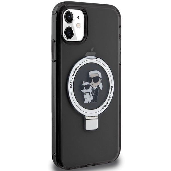 Karl Lagerfeld Ring Stand Karl&Choupette MagSafe dėklas iPhone 11 / Xr – juodas