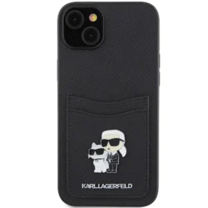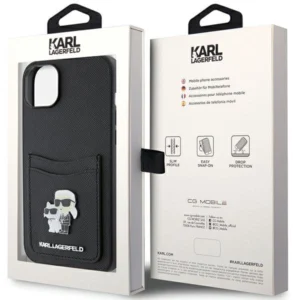 Karl Lagerfeld Saffiano kortelių lizdas Karl & Choupette metalinis smeigtukas dėklas skirtas iPhone 15 – juodas