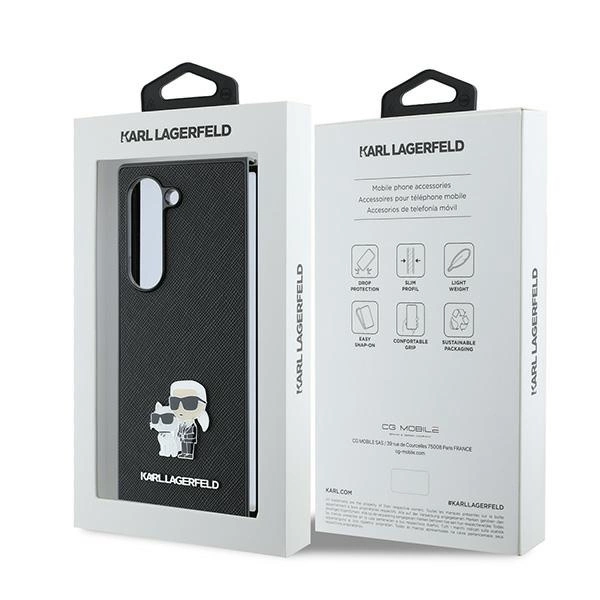 Karl Lagerfeld Saffiano Metal Pin dėklas Samsung Galaxy Z Fold 6 – juodas