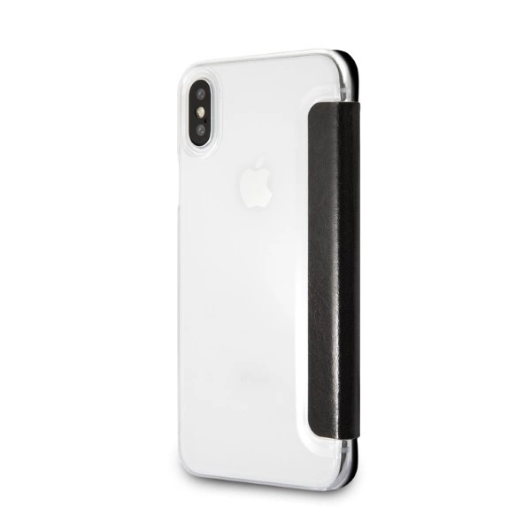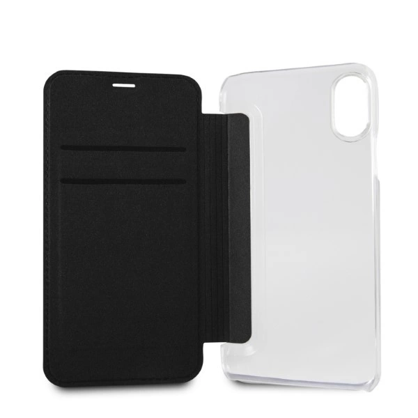 This unique case with transparent backs is made of eco-leather. The case provides full protection for your device, and is additionally equipped with practical pockets for payment cards or documents.